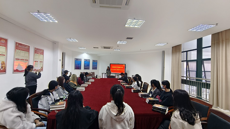 汤老师就本次见面活动及社团的未来发展发表讲话,并对2022级新成员提出了殷切希望;随后进行社团干部授旗仪式,并完成第八届精读沙龙活动启动暨赠书仪式。