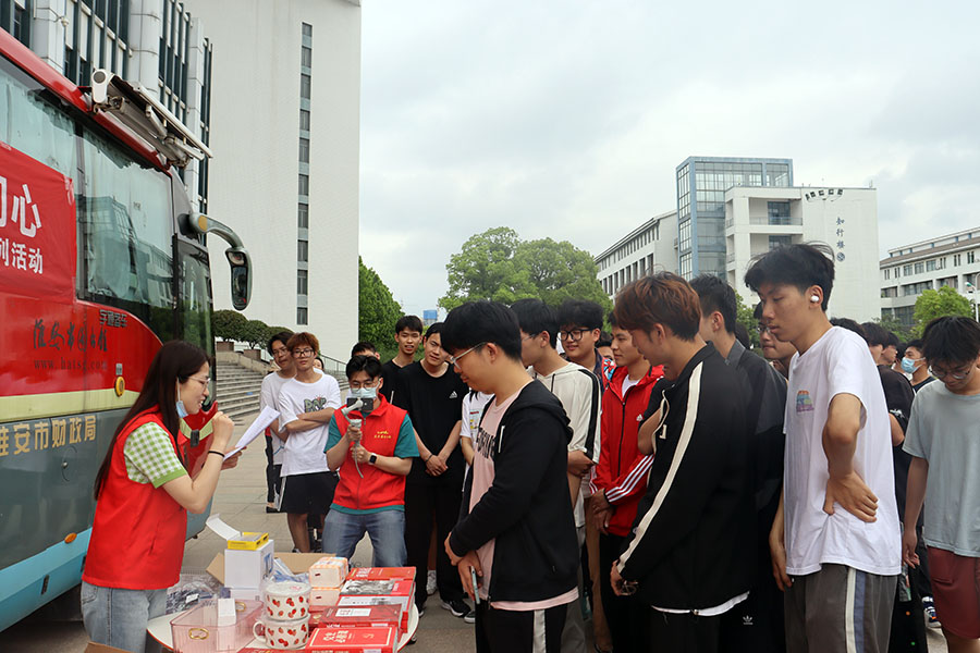 活动现场,满载红色读物等各类图书200多册的流动图书车驶进校园,同学们走进流动图书车挑选、阅读红色书籍。图书馆读者协会和淮安市图书馆志愿者共同组织青年学生观看“贯彻新思想 创造新辉煌——全面深入学习贯彻党的二十大精神”主题展览,发放“党的二十大报告速览”宣传册,并开展党的二十大知识有奖竞答活动,引导学生全面准确深入地理解党的二十大精神的深刻内涵,鼓励学生坚定理想信念、涵养家国情怀、砥砺奋斗精神,将“小我”成长融入“大我”奋斗之中。