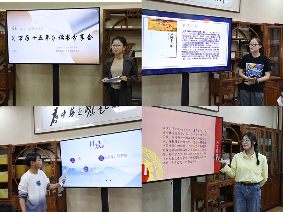 5月28日,江苏财经职业技术学院图书馆联合江苏食品药品职业技术学院图书馆举办了第十一期精读沙龙,共读黄仁宇著作《万历十五年》。图书馆副馆长汤丽媛、食品学院图书馆指导教师赵梦洁、导读教师宋甲丽以及两校30余名学生齐聚翔宇书斋,在阅读中越故知新、亘古通今。