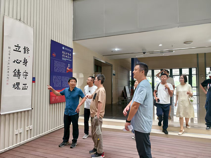 随后,刘军带领全体人员参观图书馆一楼“翰墨书峥嵘 丹青映同心”纪念中国人民抗日战争暨世界反法西斯战争胜利80周年主题书画展,使大家接受精神洗礼和爱国主义教育。